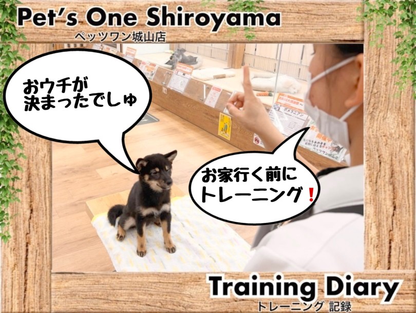 今回家族が決まった豆柴ちゃんもお店にいた際はトレーニングしていました。