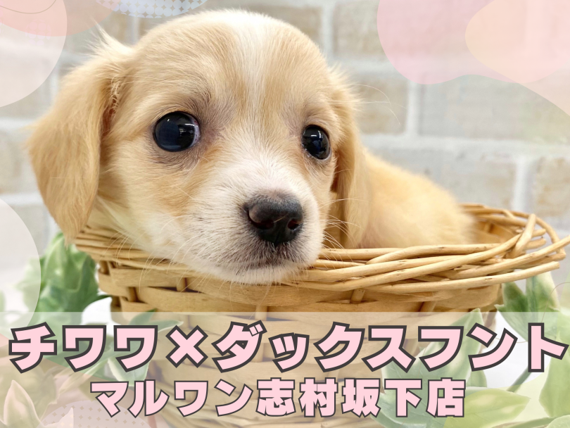 東京都板橋区にある【ペットショップ マルワン板橋 志村坂下店】の最新の子犬子猫情報をお届けいたします!お父さんがチワワ、お母さんがミニチュアダックスフントの超ハイブリッドガールのチワックスちゃんが新しく仲間入り♪