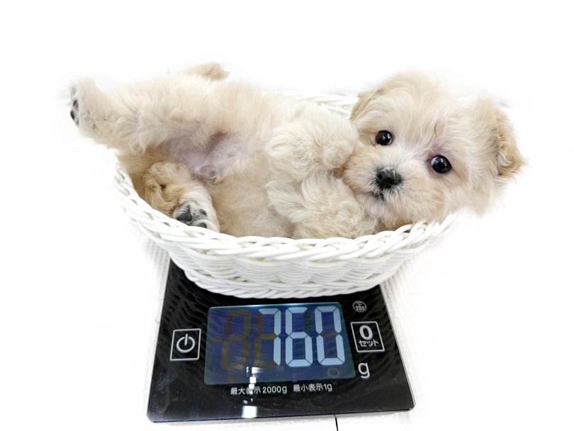 生後2ヶ月のマルプーちゃんの体重はわずか『760g』。