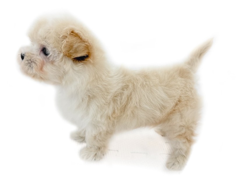 シルクのように艶やかで柔らかく、緩いウェーブがかった被毛はとても愛らしくて一言で表すとしたら『まんまるの小さなふわもこ天使』といったところでしょうか…。