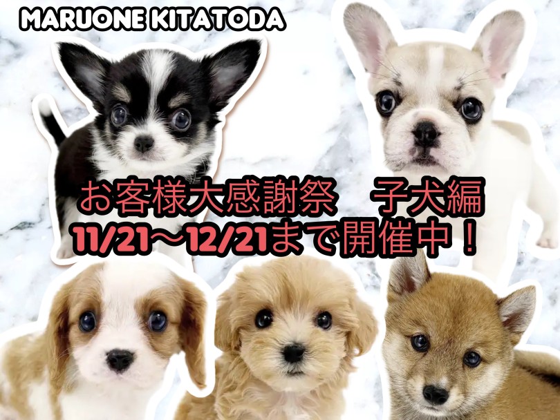 【 お知らせ 】お客様大感謝祭開催!マルワン北戸田店の子犬全頭紹介!