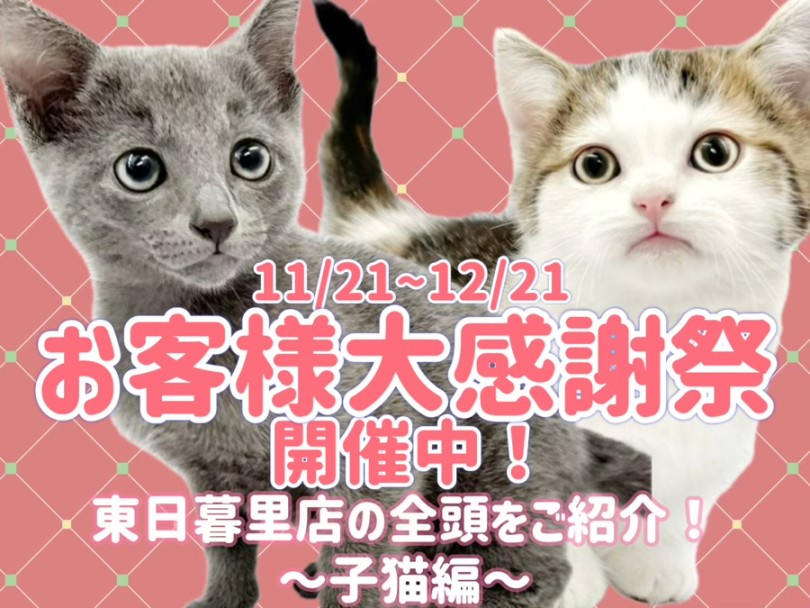 【 お知らせ 】お客様大感謝祭スタート!マルワン東日暮里店全頭ご紹介!子猫編