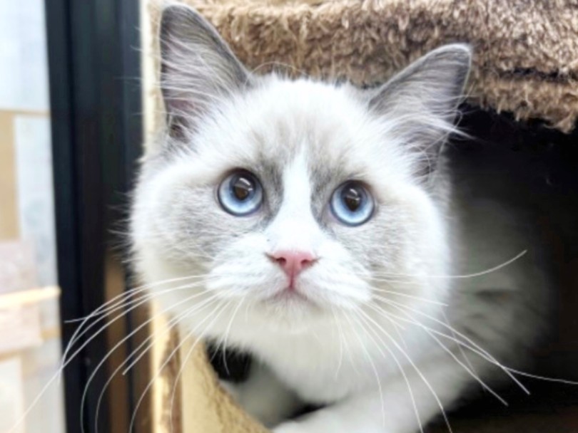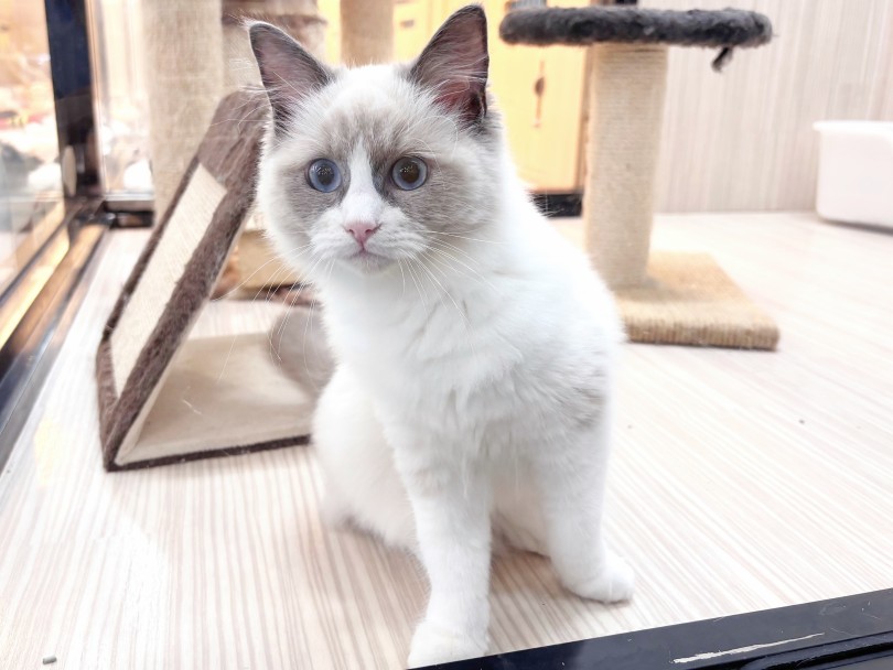 マルワンさいたま武蔵浦和店で大人気ブルーポイントバイカラーのラグドールの女の子が生後4ヶ月を迎えました!