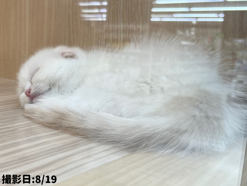 入店直後の8月中旬撮影のこの写真では全体的の小さく子猫特有のパヤ毛も確認できて、かなり幼い印象ですね♪