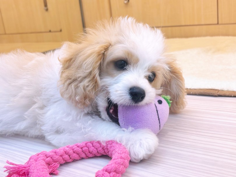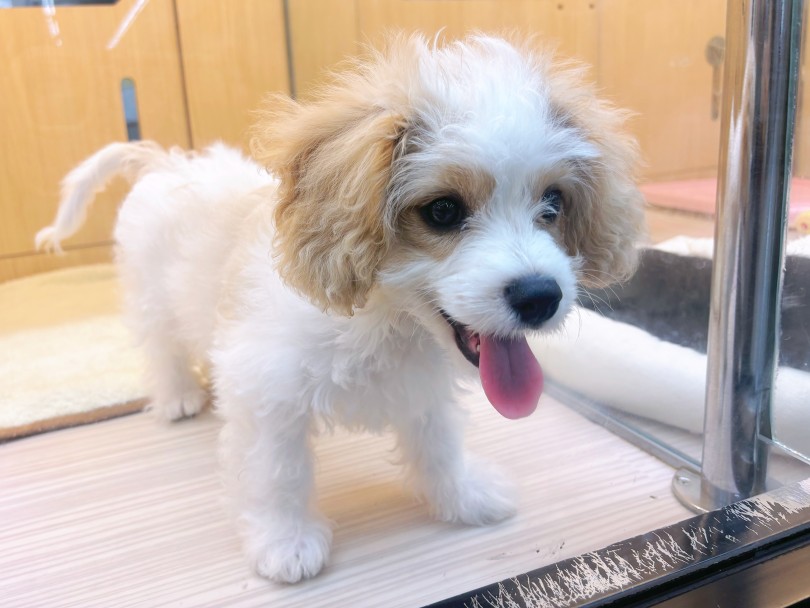 埼玉県さいたま市南区にあるペットショップ「マルワンさいたま武蔵浦和店」より、マルワンのキャバションの男の子最新成長レポートをお届けします!キャバリア×ビションフリーゼのハイブリッド犬「キャバション」。