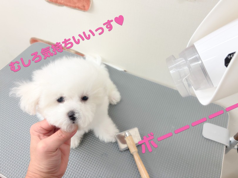 ビションちゃんは入店初日から「毎日」ドライヤーを使用してドライイングトレーニングしておりますので「風圧」「音」ともに難なくクリアしているのです(^^)