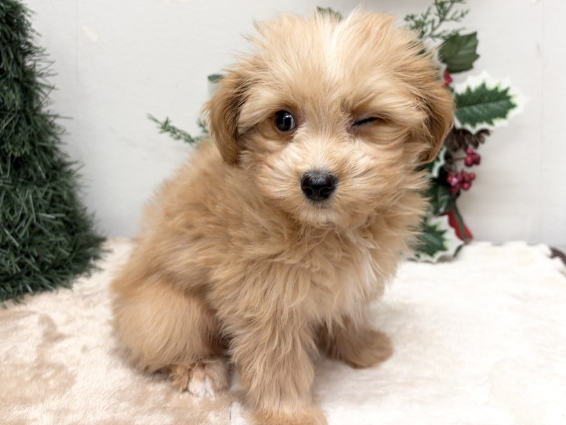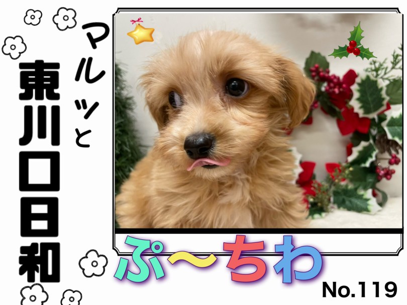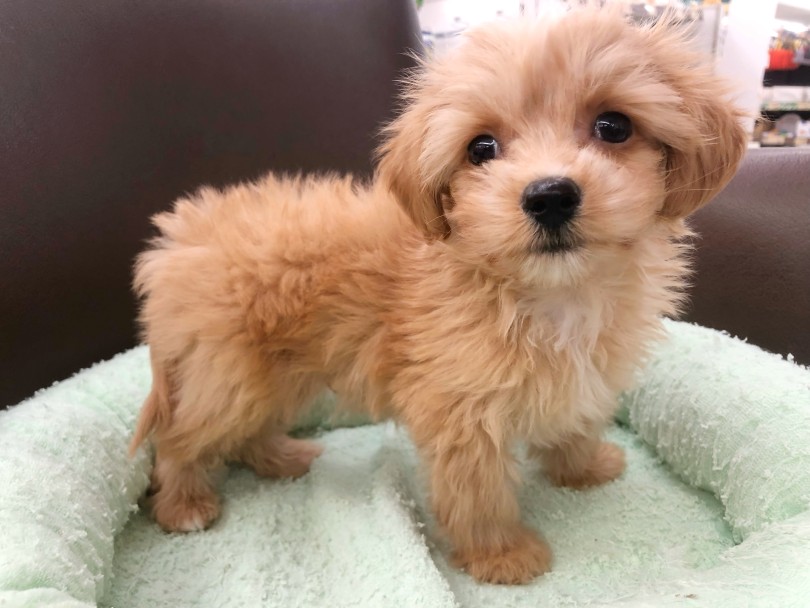 今回ご紹介させて頂くのは、プードル譲りの柔らかい皮毛に、チワワ譲りのクリっとした大きな瞳、レッドカラー『プーチワ』の男の子!