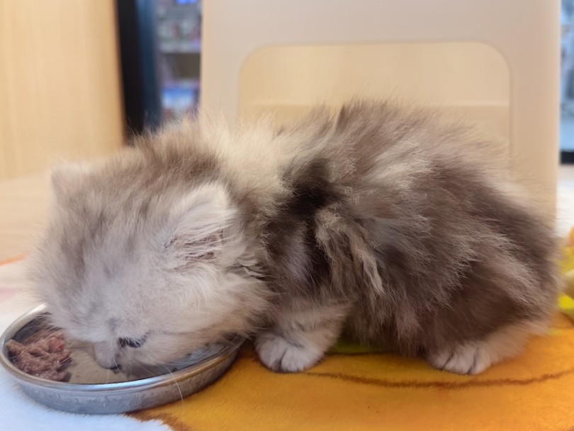 ▲初めてのご飯もぺろりと完食!ペチャ顔の為ちょっぴり食べ方の癖がすごいペルシャちゃまなのでした(笑)
