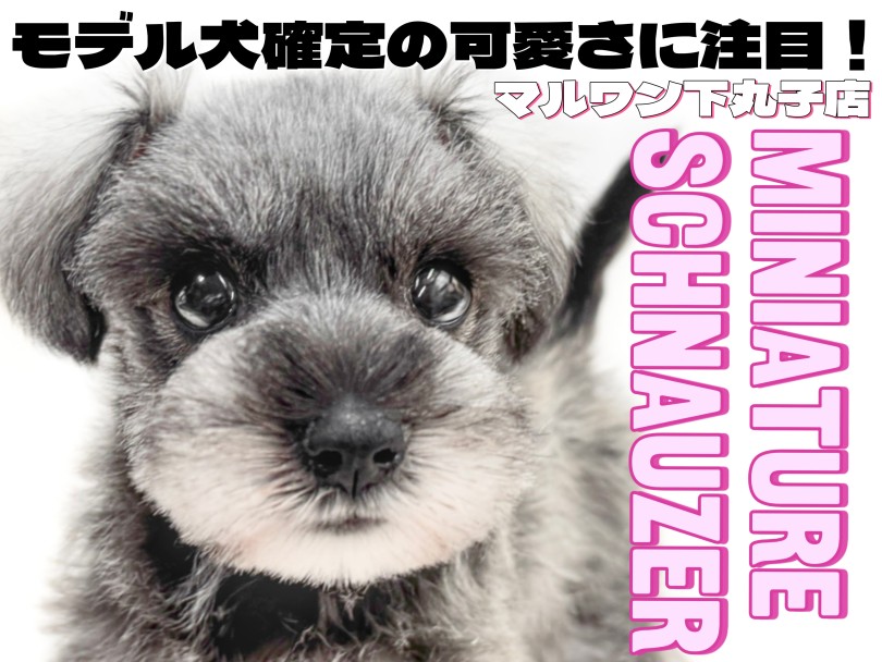 立派な眉毛と口髭のある姿、小型犬随一の賢さから【犬界の博士】の異名をもっているミニチュアシュナウザー♡モノクロのルックスは可愛さとかっこよさを持ち合わせ、下丸子店のアイドル犬に抜擢された女の子!
