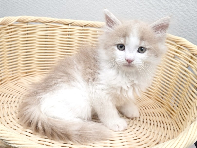 ちょっぴり垂れ目で困り顔のサイベリアンちゃんは、ふんわりカラーも 柔和で可愛いお顔の子です♪