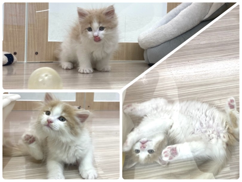 今は、とにかく遊びたい&何でも楽しい月齢のサイベリアン君は、特にボール遊びが大好きで毎日追いかけていてとっても楽しそうに過ごしています。