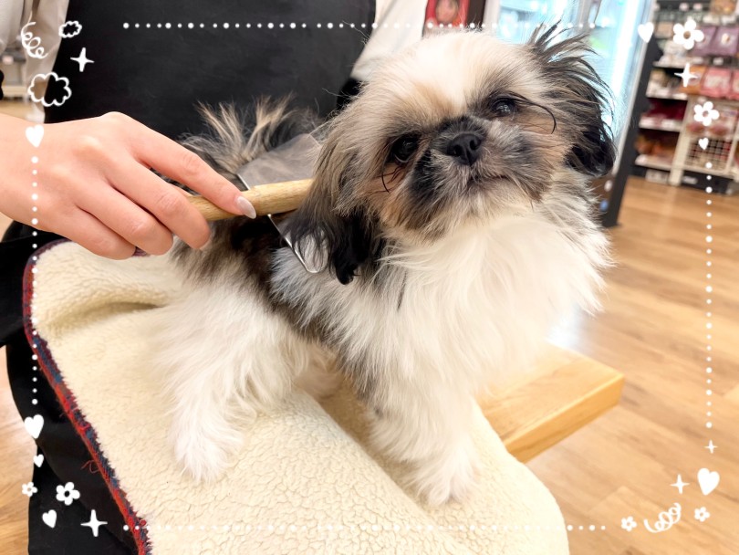 シーズちゃんはダブルコートの犬種です!ダブルコートの中でも毛の抜け落ちは少ないですが、毛が細く絡まりやすいです。