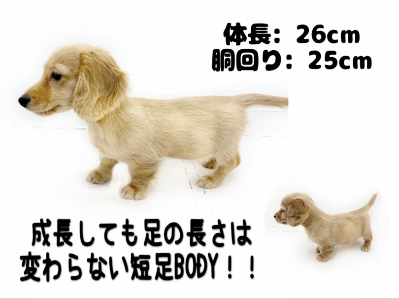 お次は横からの姿でどれだけ成長したかを見てみました♪入店時と比べると、胴の長さはほんの少し伸びてきたものの、足の短さはほぼ変わらず!といった感じ。