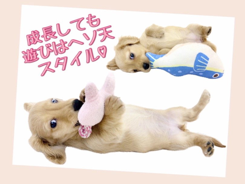 続いて遊びのシーンをご紹介♪入店した頃からダッちゃんの遊び方といえば、なぜか毎回ヘソ天スタイル。
