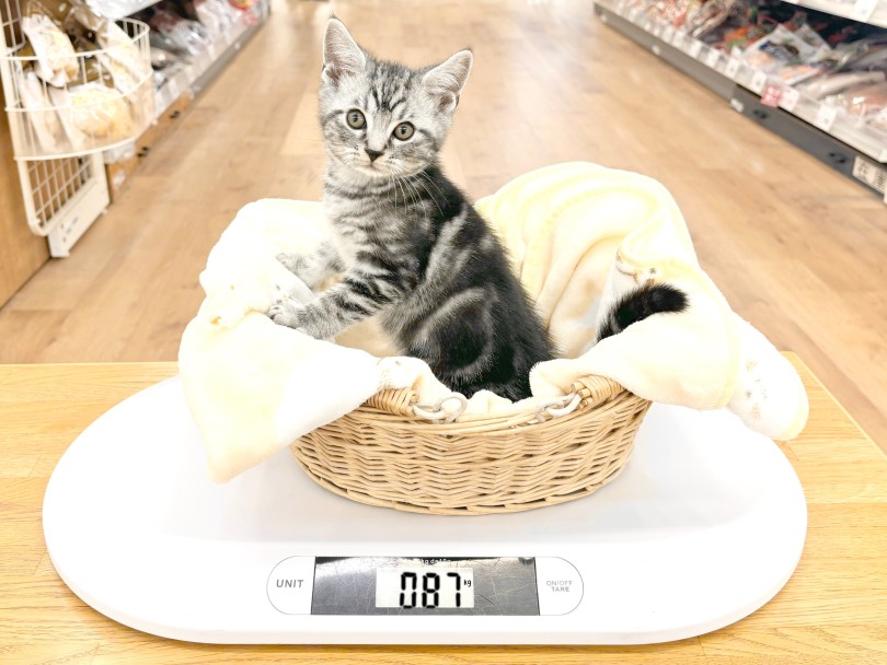 12/10現在の体重は870gでした。成猫時は2.0~5.0kgと予想しております。