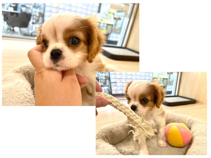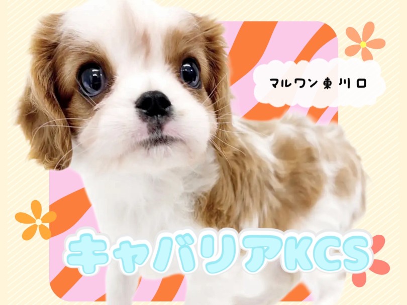 埼玉県川口市にあるペットショップ【マルワン東川口店】に大きな瞳とカールのかかった耳が特徴的な『キャバリア・キングチャールズ・スパニエル』の女の子が仲間入り!