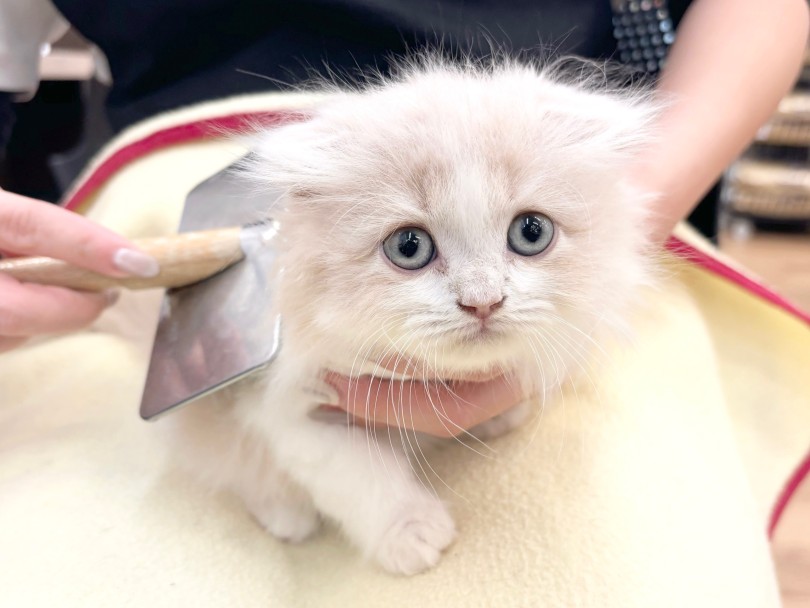 長毛なので毛玉や毛もつれを作らないためにも重要なお手入れです。また毛球症を予防するためにもブラッシングは効果的です!