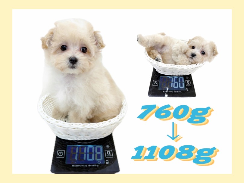 前回はカゴの中で寝っ転がりながら体重測定をしていたマルプーくんも、今回はきちんとお座りして計らせてくれました♪成長期の今、入店当初760gだった体重は1108gに!