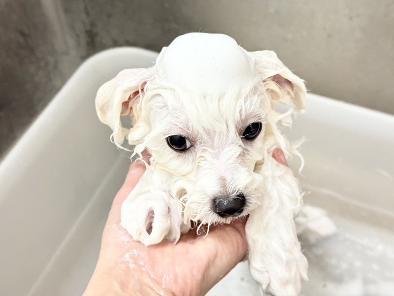 ボクの被毛は伸びてくるからトリミングサロンでカットが必要になるけれど、いまのうちからシャンプーやお手入れのトレーニングもこなしているからお家でもシャンプーできちゃうさっ♡