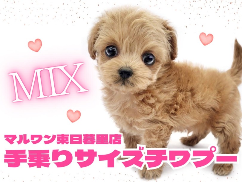 東京都荒川区の犬猫専門ペットショップマルワン東日暮里店に新しく仲間入りしたのは、小さい身体に童顔の"チワワ"、テディベアのようなモコモコボディの"トイプードル"のミックス犬です♡
