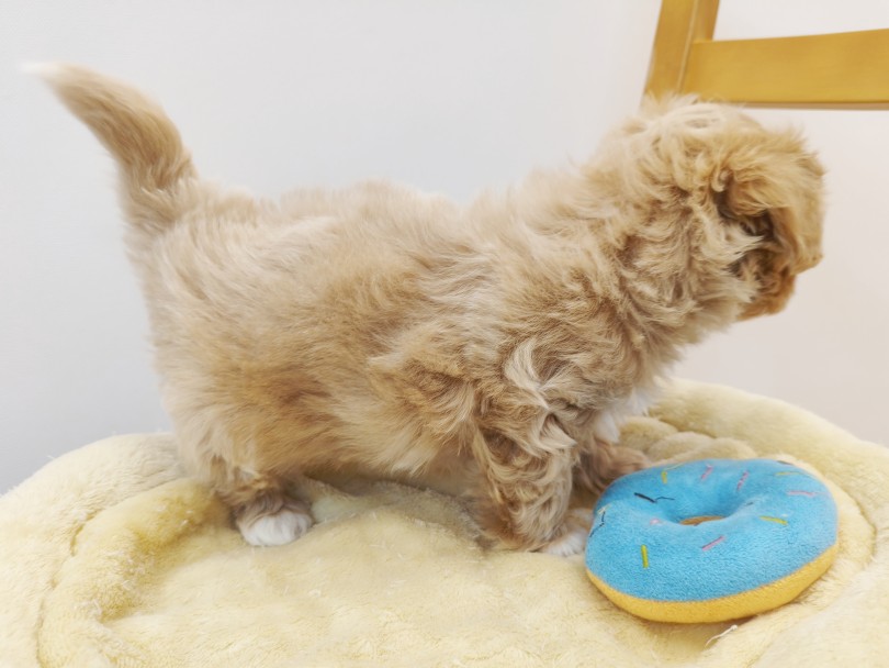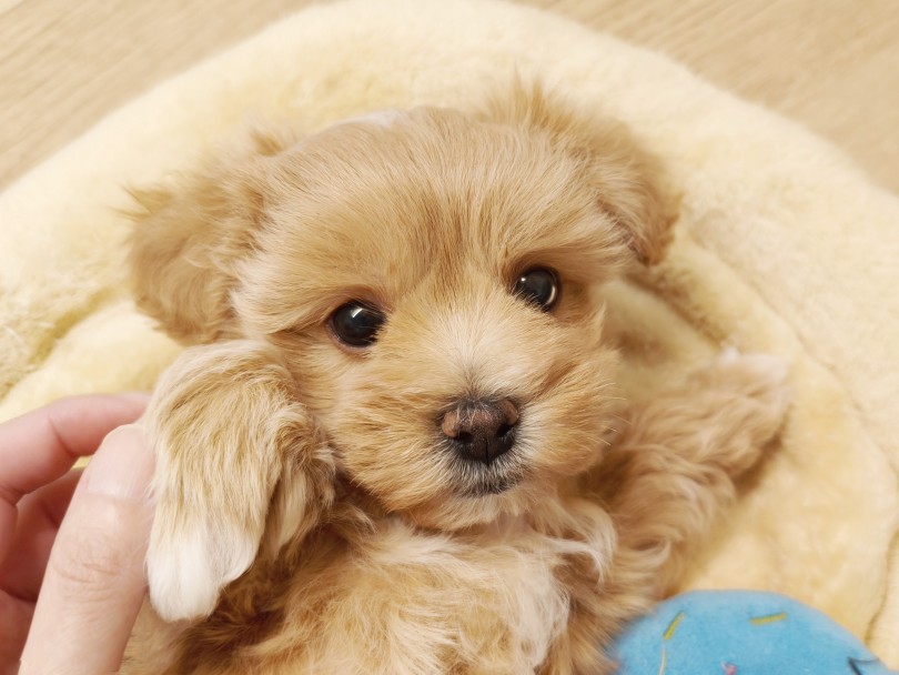 パパのマルチーズ譲りの柔らかくサラフワな被毛に、ママのトイプードル譲りのアプリコットカラーがなんとも可愛らしい♡