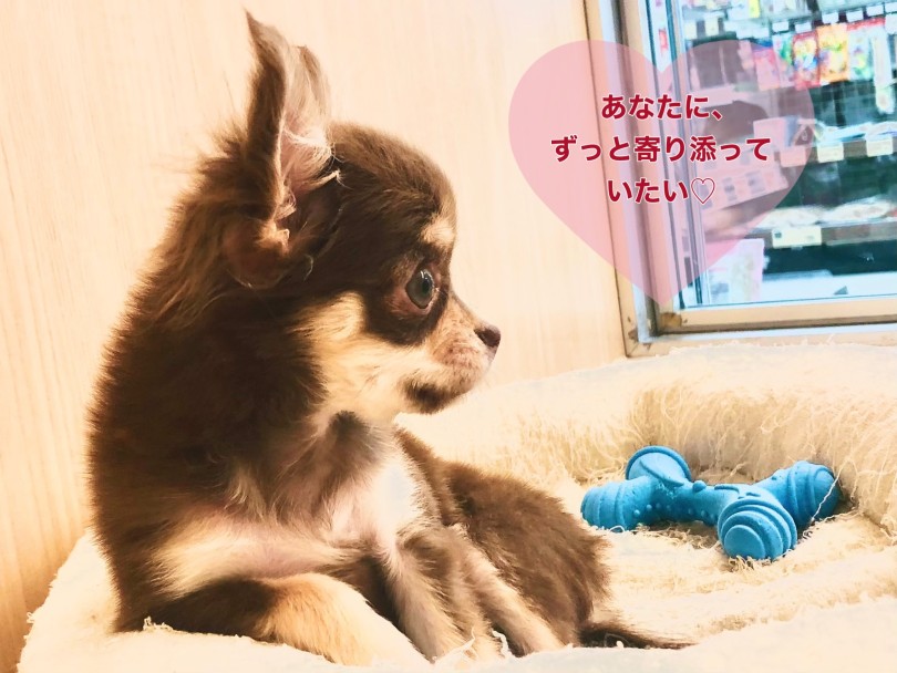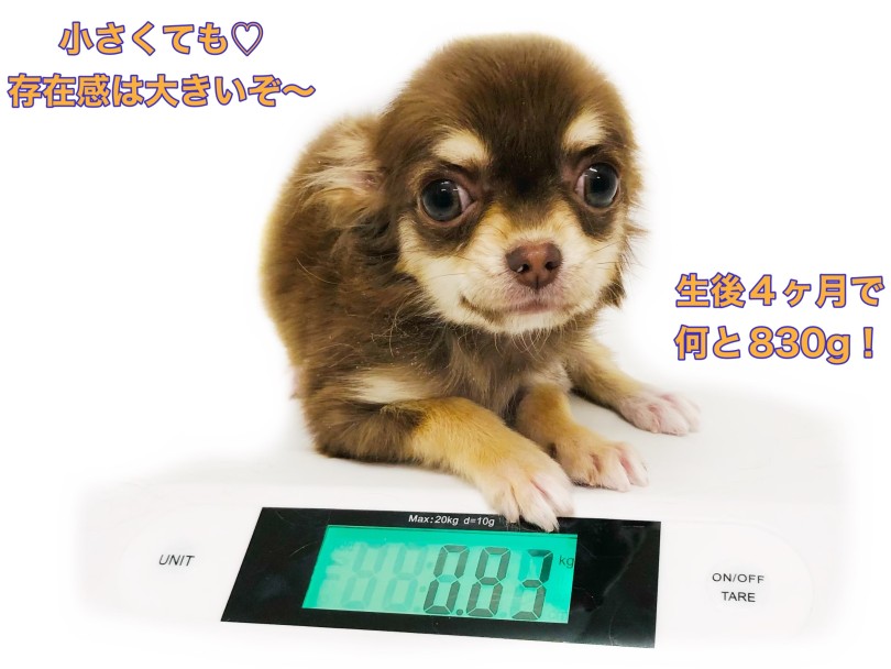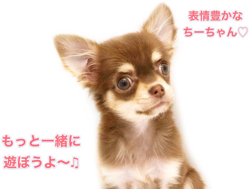 今回は、生後4ヶ月を迎えたチョコレート&タンカラーの『ロングコートチワワ』の女の子です。