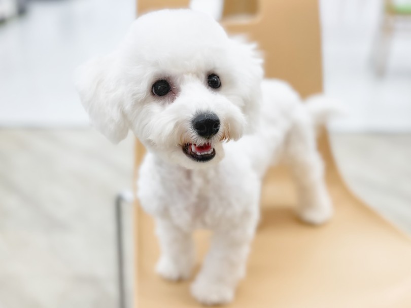 成長とともにふわふわ、もこもこに育ってきたビションちゃんの被毛。もちろんこのままでも十分可愛いビションちゃんですが…今回は年越しを前に少しスッキリめのカットをすることに♪
