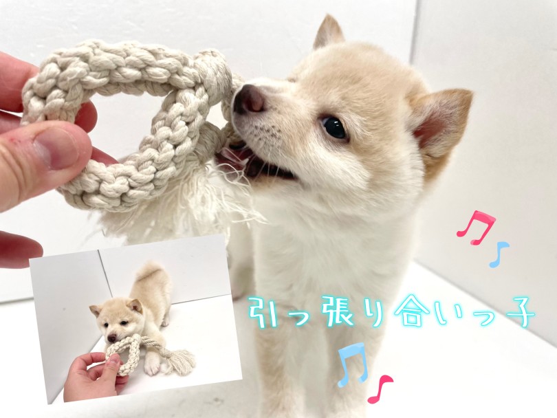 飼い主様が大好きで、体力のある豆柴ちゃんを満足に遊ばしてあげる為にはおもちゃで引っ張り合いっこが一番満足してくれる遊び方です。
