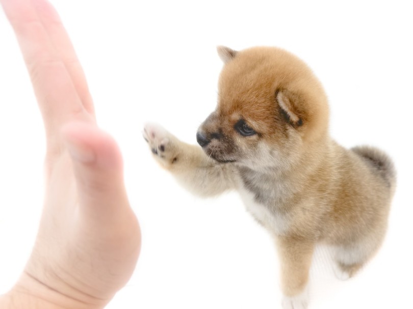 『ねぇねぇ』と呼びかける豆柴ちゃん。構って欲しい時には、こうして前足でチョイチョイとタッチしてアピールしてくるのが可愛いです♪