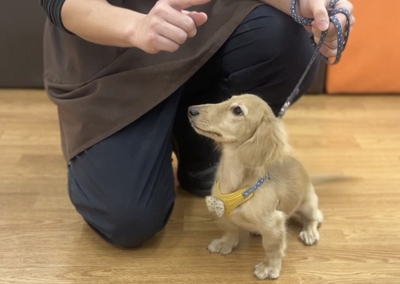 ダックスくんは生後5ヶ月を迎え、「お手入れ」「お散歩」など様々なトレーニングを日々一生懸命に行っています♪
