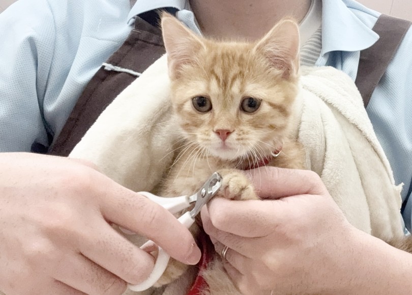 足裏バリカンの振動や音で最初怖がる子がいますが、港北NTのマンチカンくんはまだ何もわからずに抱っこされながらスリスリ甘えてる間にお手入れ終了!