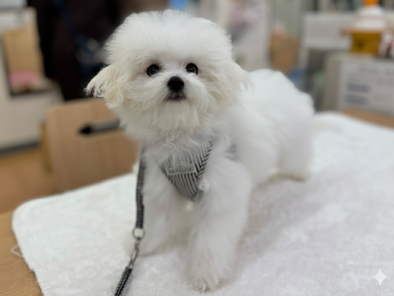 真っ白な被毛をまとった、小さなイケメンビションくんが、港北NT店にお引越ししてきました。