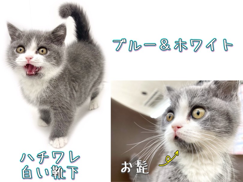 ブリちゃんはブルーを基本に、足先やお顔にホワイトが入る「ブルー&ホワイト」。