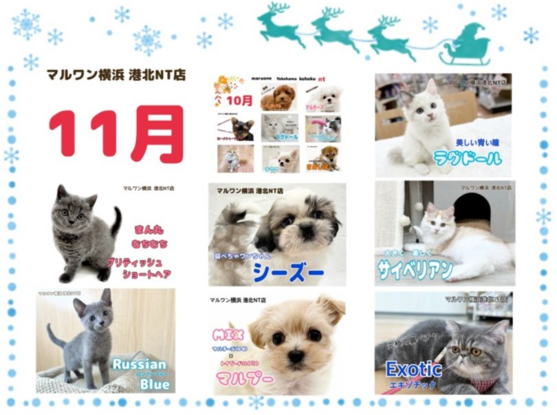 12月も、港北NT店の可愛いワンニャンの今が盛りだくさんとなっております。