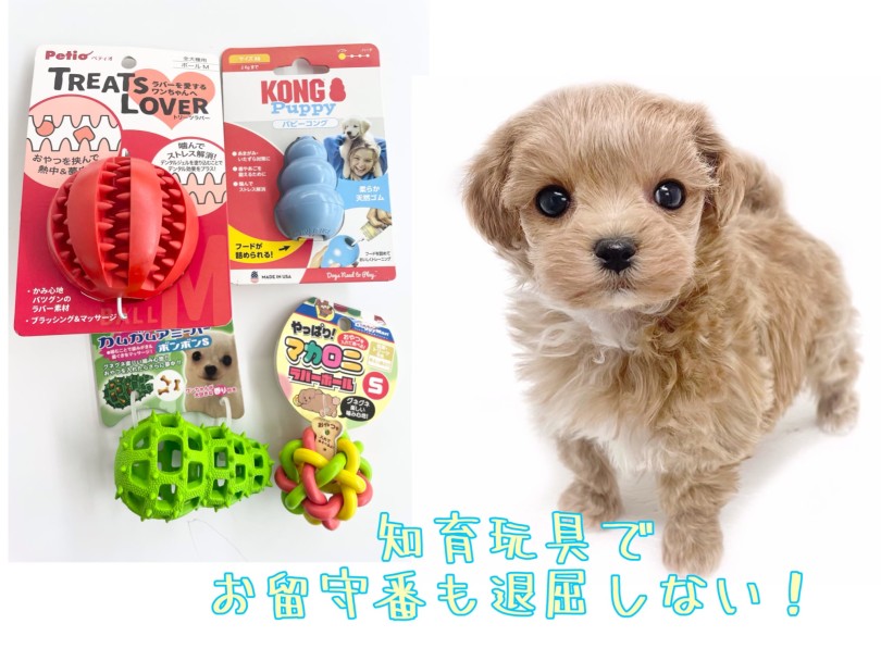 中におやつを入れることが出来るおもちゃは遊びながら学ぶ事ができ、マルプーちゃんも夢中になります。