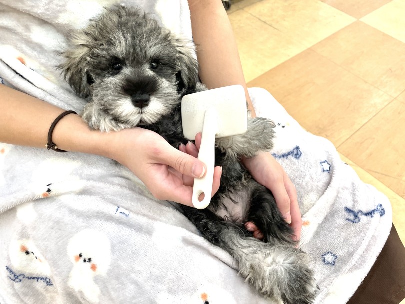 本日ご紹介するのは、生後3ヶ月を迎え心も体も美しく育ってきたミニチュアシュナウザーの女の子。今では元気いっぱいにおもちゃを咥えて、人の手のぬくもりに安心して身を委ねてくれるように!