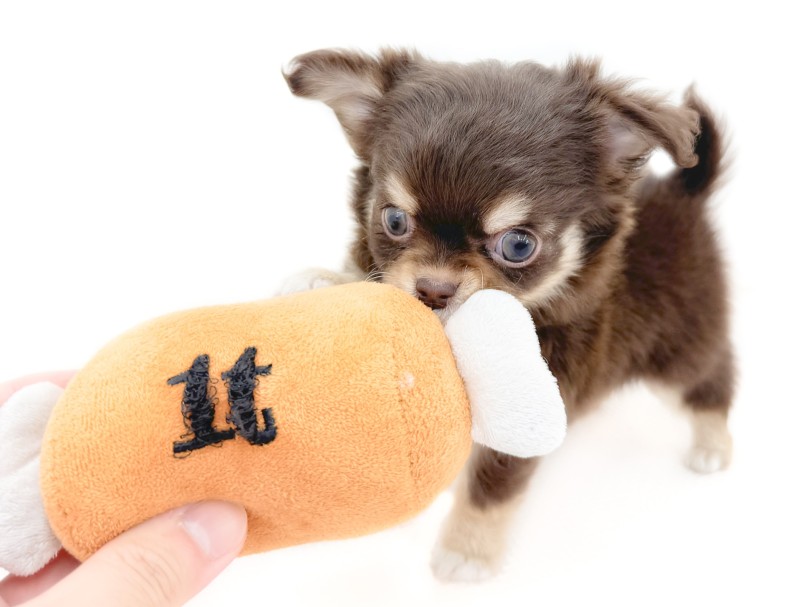 自分と同じくらいの大きさのおもちゃにも、ためらうことなくトコトコと近づいてくるチワワくん。初めて見るものにも興味津々で、ちいさな体を使ってクンクン…と確認する姿がとっても可愛いんです♡