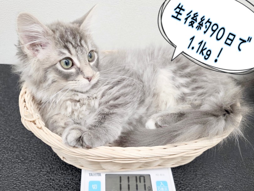 ほんのりちびっこサイズ!生後90日で1.1kg!