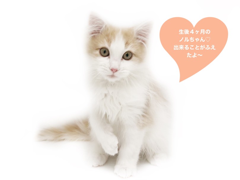 本日ご紹介するのは、クリーム&ホワイトカラーが美しいノルウェージャンフォレストキャットの男の子です。