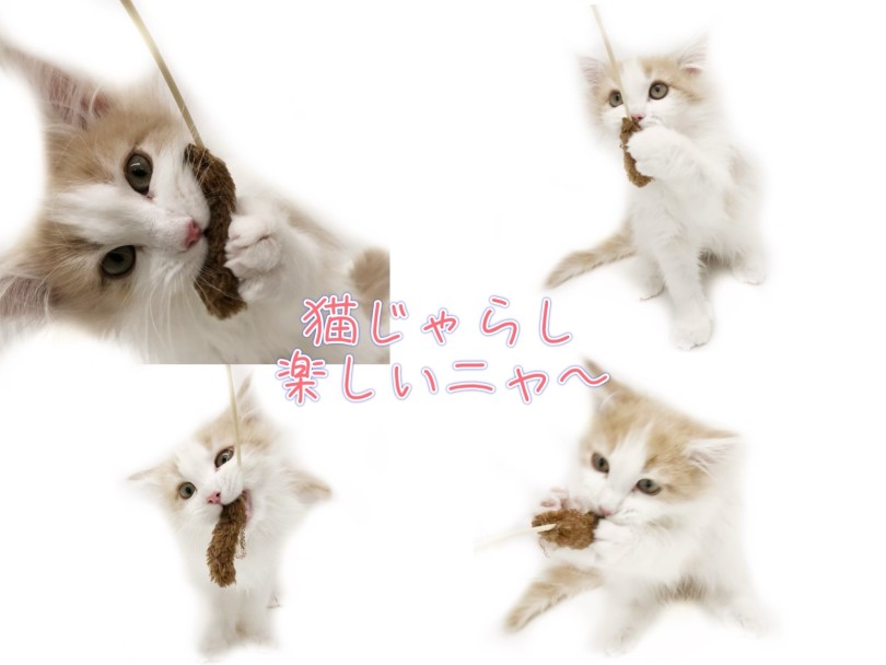 動く猫じゃらしを目で追い、狙いを定めて前足を伸ばしてタッチ!