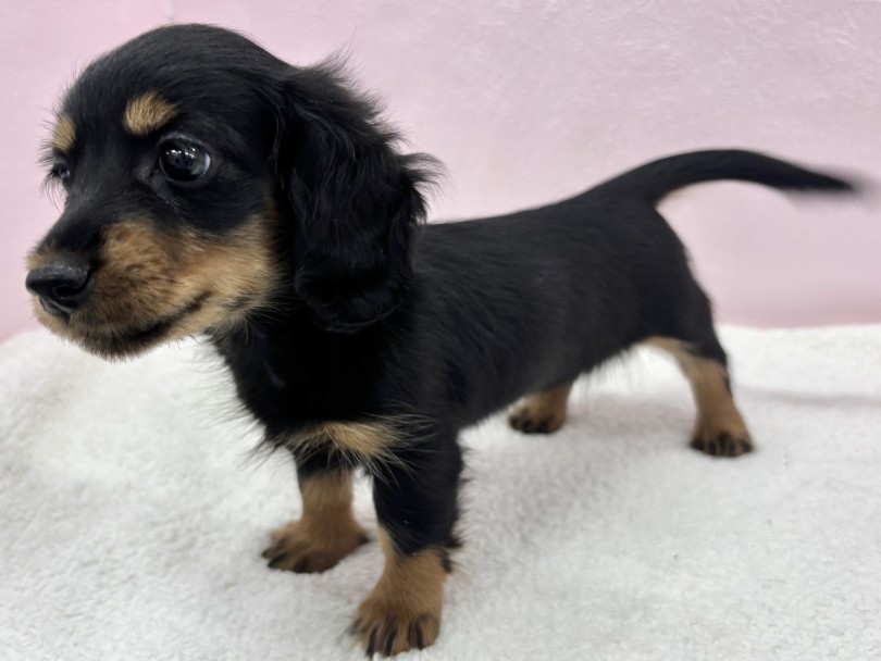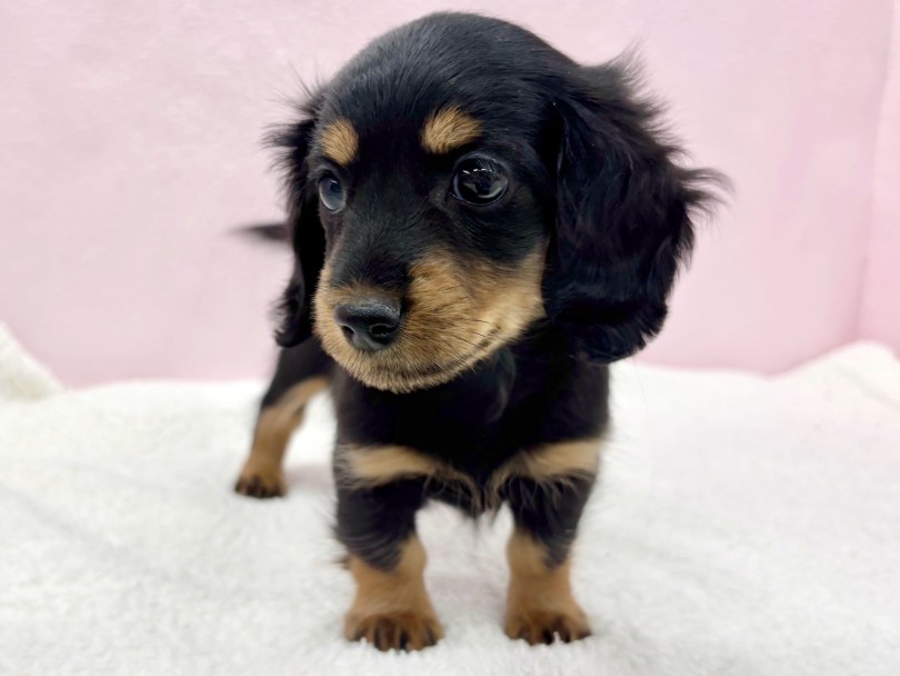 被毛は、艶のあるブラックに発色の良いタンカラーが映える王道カラー。