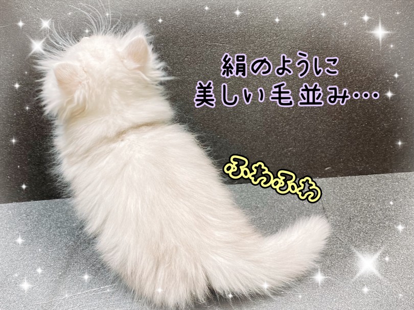 また、被毛はふわふわでまるでシルクのようにとても柔らかく、触り心地は超抜群!ずっと撫でていたくなるくらい、ペルシャならではの豊かで美しい被毛。
