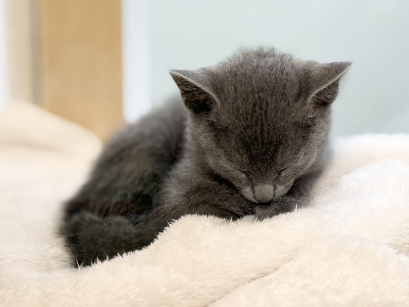 ロシアンブルーといえば、透き通るような『ブルー』一色の毛並みが特徴ですが、子猫の時期にだけ現れる不思議な模様があります。