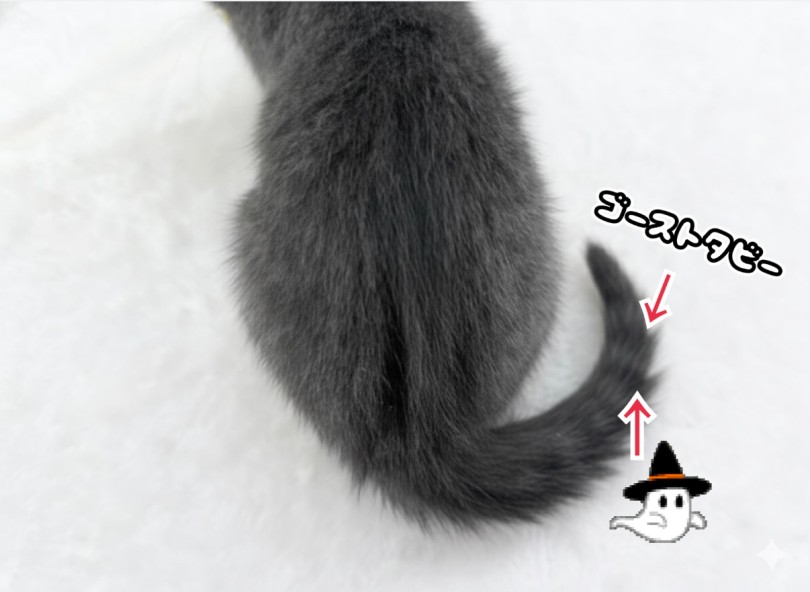 ゴースト(幽霊)+タビー(縞模様)という名の通り、本来は無地であるはずの体に、うっすらと浮かび上がる縞模様のことを指します。