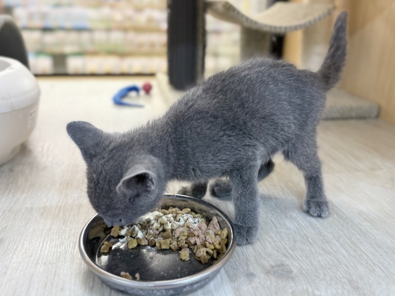 現在、ロイヤルカナンの子猫用をふやかして粉ミルクをふりかけ少しウェットをトッピングしたご飯を食べています。