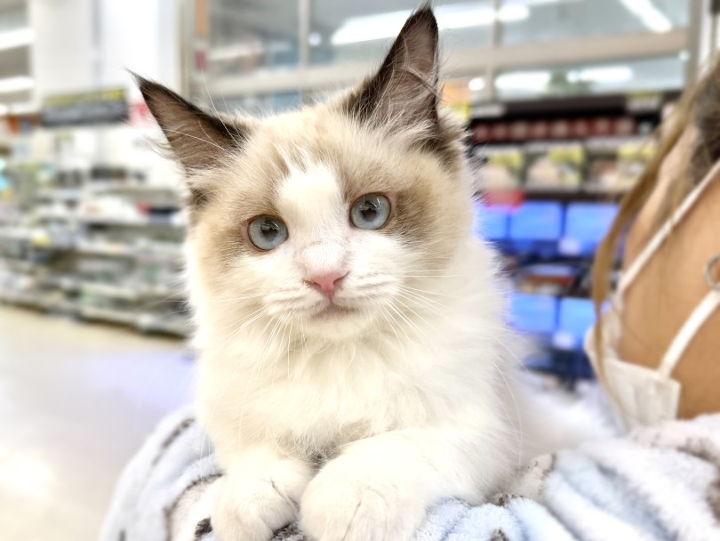 ラグドールならではの神秘的で青く透き通ったブルーの瞳は、お店に来たときから変わらず鮮やかでまるで宝石のような輝きを放っています♡