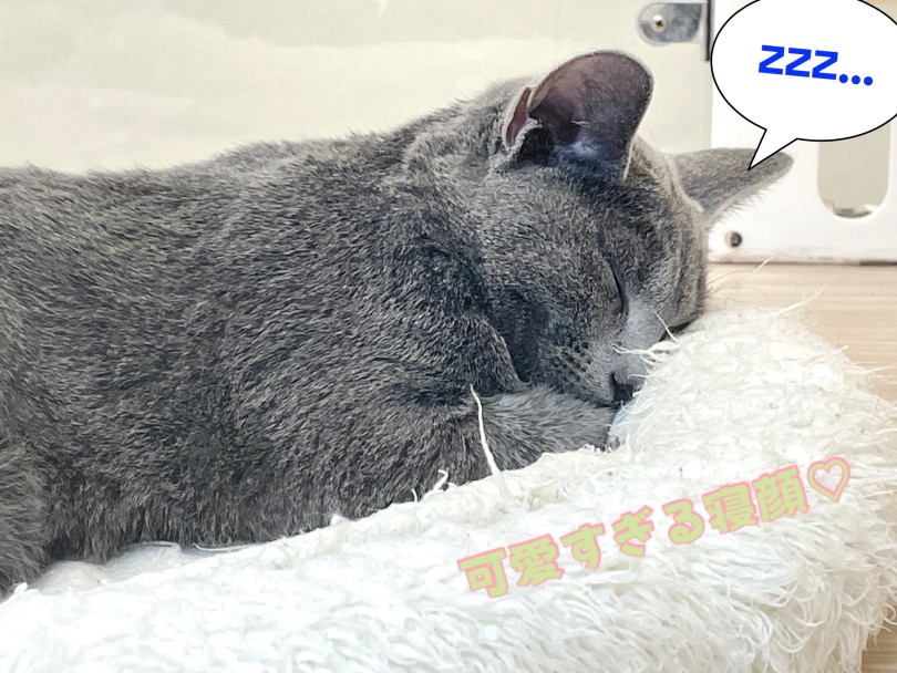 ちゃんとベッドを使ってスヤスヤ寝息を立てて爆睡をするロシちゃん。
