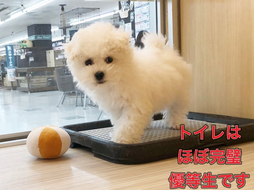 生後2ヶ月の入店当初は、60%くらいの成功率だったビションちゃんも、生後4ヶ月をむかえようとしている今は、ゲージ内でのトイレ成功率は、驚異の80%です。