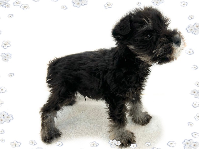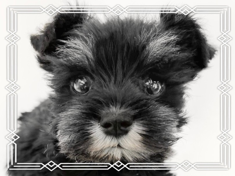 左右対称にシルバーカラーが入っており、シュナウザーの特徴でもある、キリッとした眉毛におじいちゃんのようなお髭。