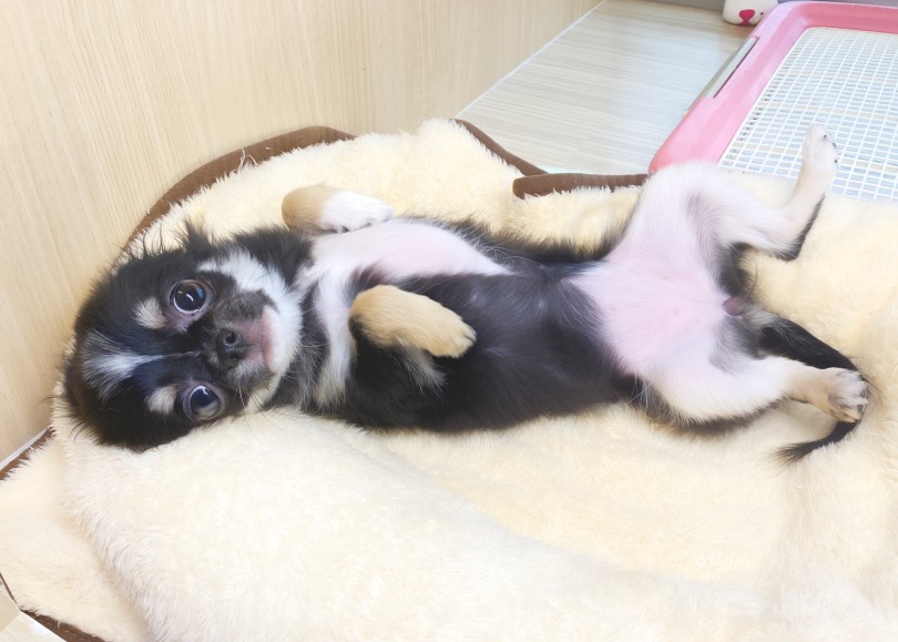 パカッとヘソ天でお出迎えのチワワの「ちーちゃん♡」